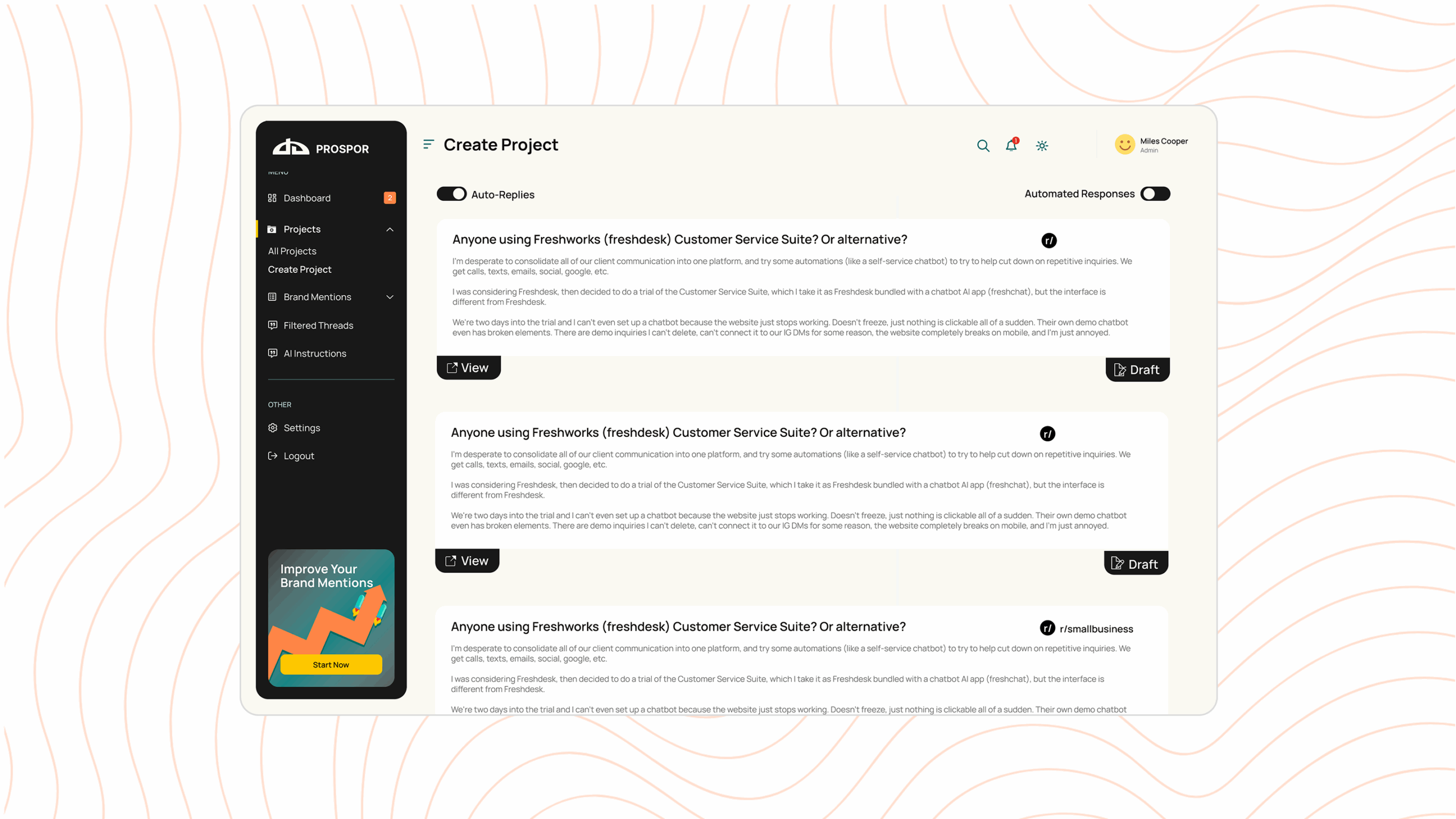 PROSPOR is a Reddit-focused social listening and engagement platform designed to help brands tap into insightful data sources of authentic user conversations.