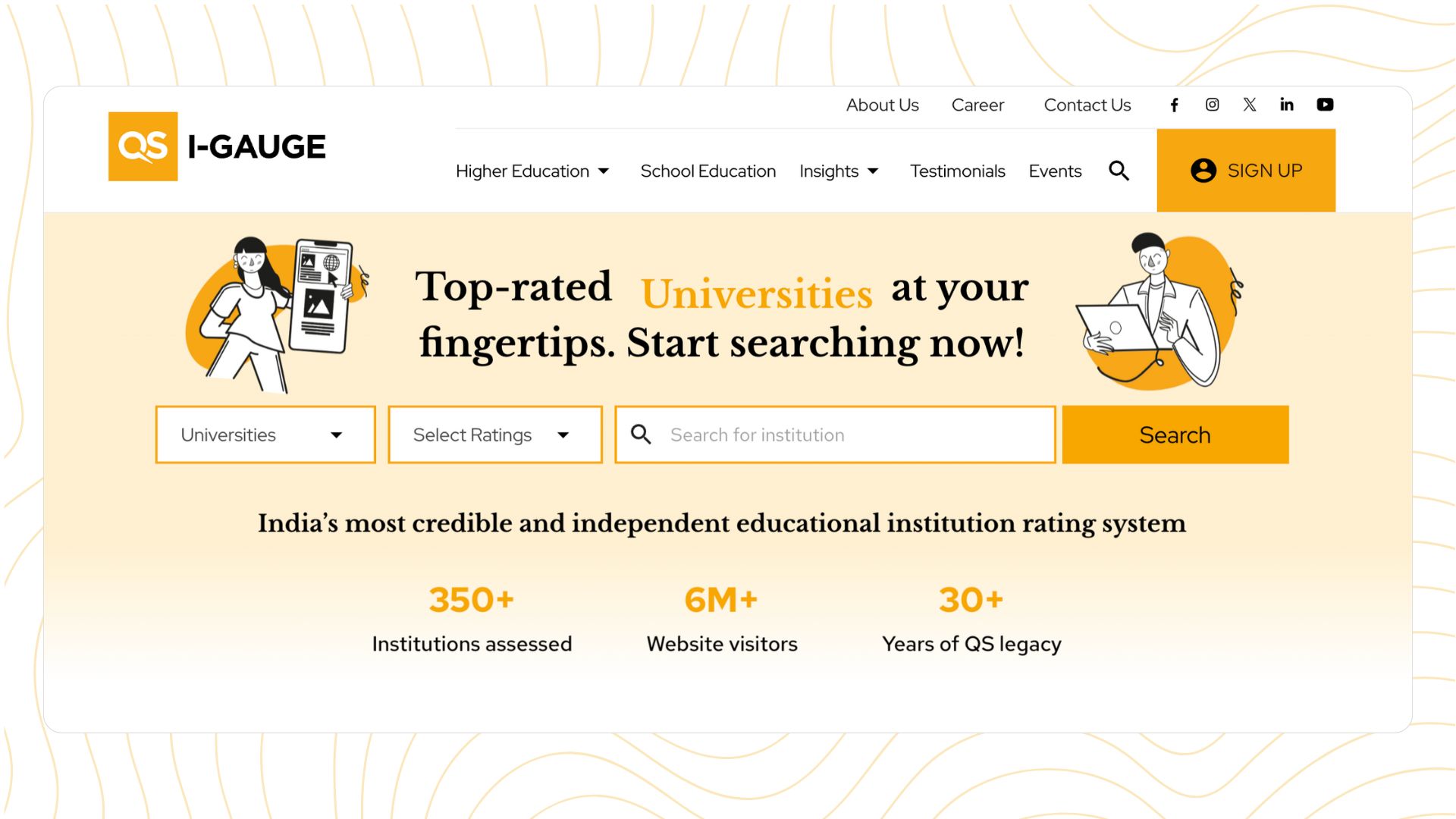 QS I-GAUGE is a trusted Indian education benchmarking and evaluation platform backed by QS’s global expertise. The platform evaluates universities, colleges, and schools across India using measurable quality indicators, helping students and parents make informed academic decisions.
