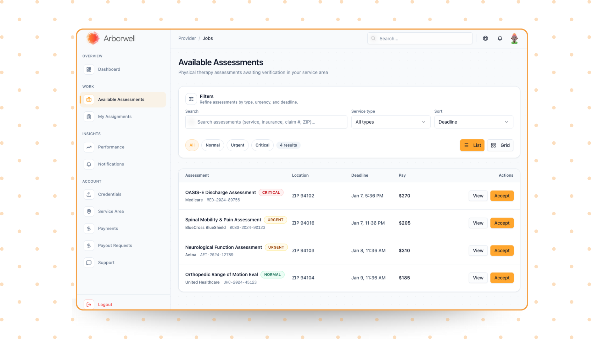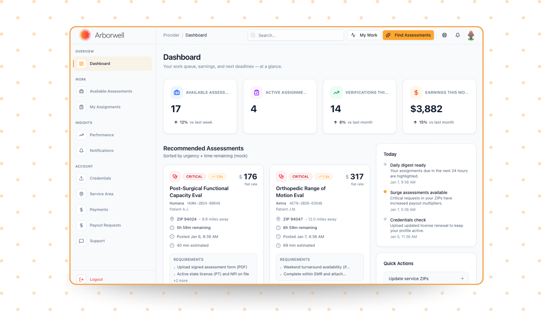 Reduced assignment assessment time by 83% | Achieved 95% on-time completion rates | Improved therapist network by 240% within 6 months
