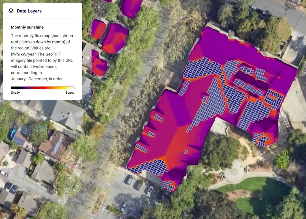 - Integrated Google Solar API to identify buildings with solar installation potential based on location, rooftop area, sunshine hours, and energy savings data